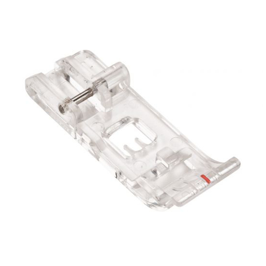 The clear sole affords the perfect view of your sewing project. It is ideal for decorative seams that have been previously tailor-tacked, as well as for positioning at the beginning or end of a seam.